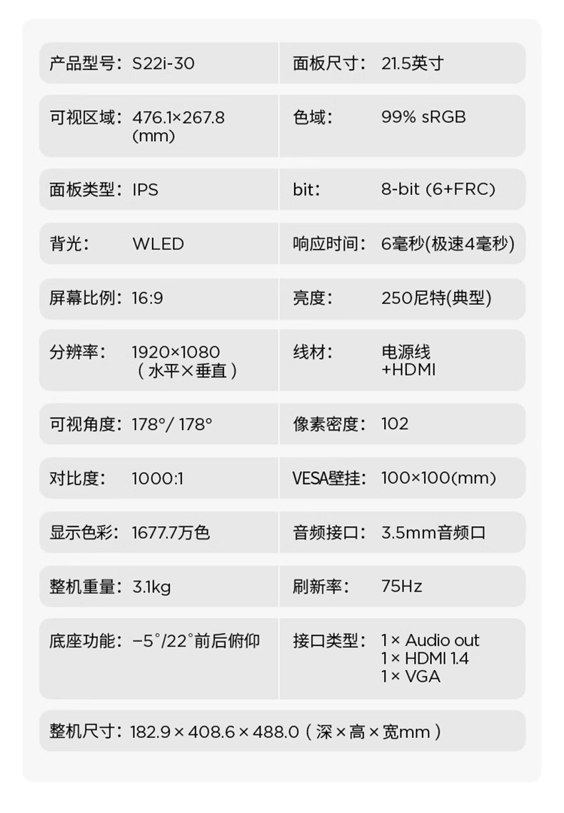 联想显示器 S22i系列 窄边框低蓝光 电脑显示器S22i 显示屏