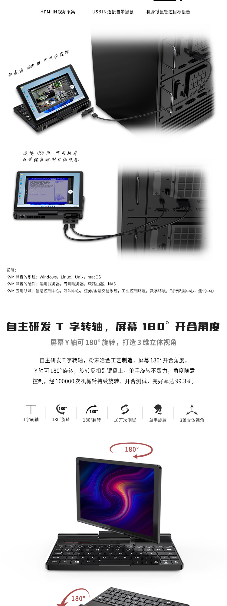 GPD Pocket3国货之光工程师本 8英寸迷你轻小笔记本电脑 便携折叠多功能触控掌上笔记本电脑 Gold 7505 16G 512G固态