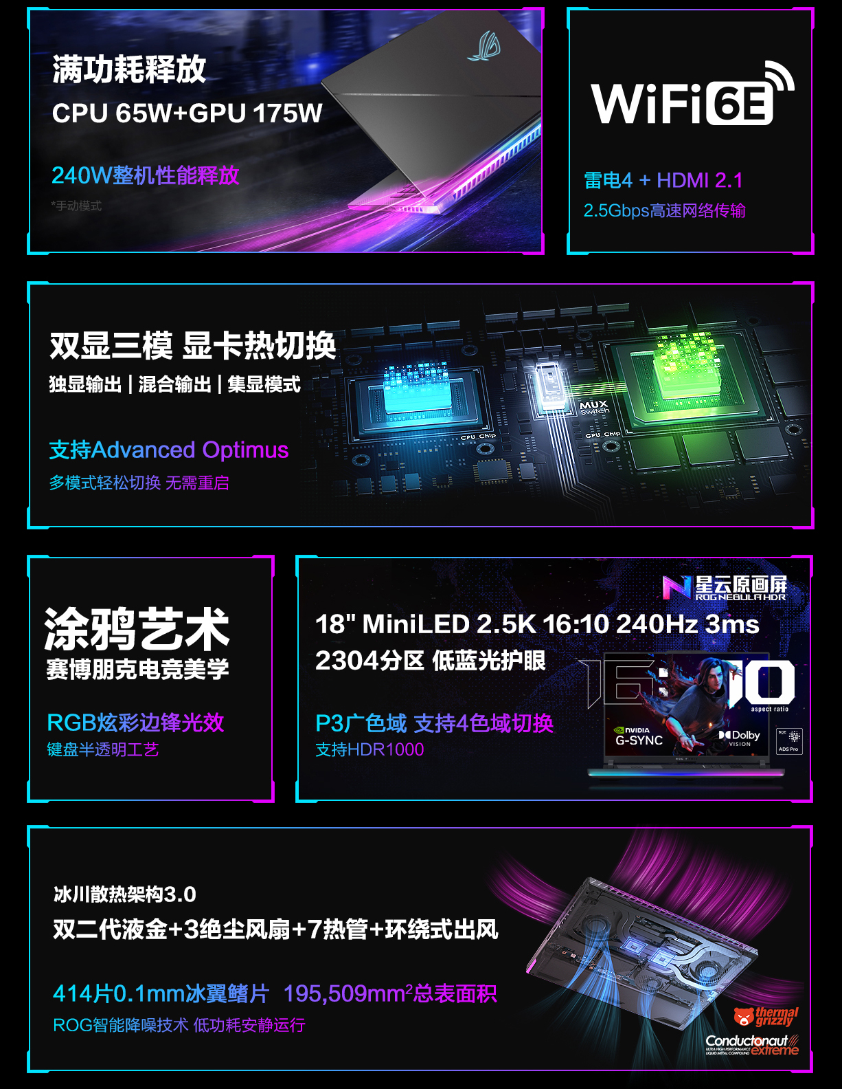 ROG枪神8 plus 超竞版14代酷睿i9 18英寸星云屏游戏笔记本枪神7超竞 枪神8超竞/i9-14900HX/RTX4080 16G内存 1T固态硬盘
