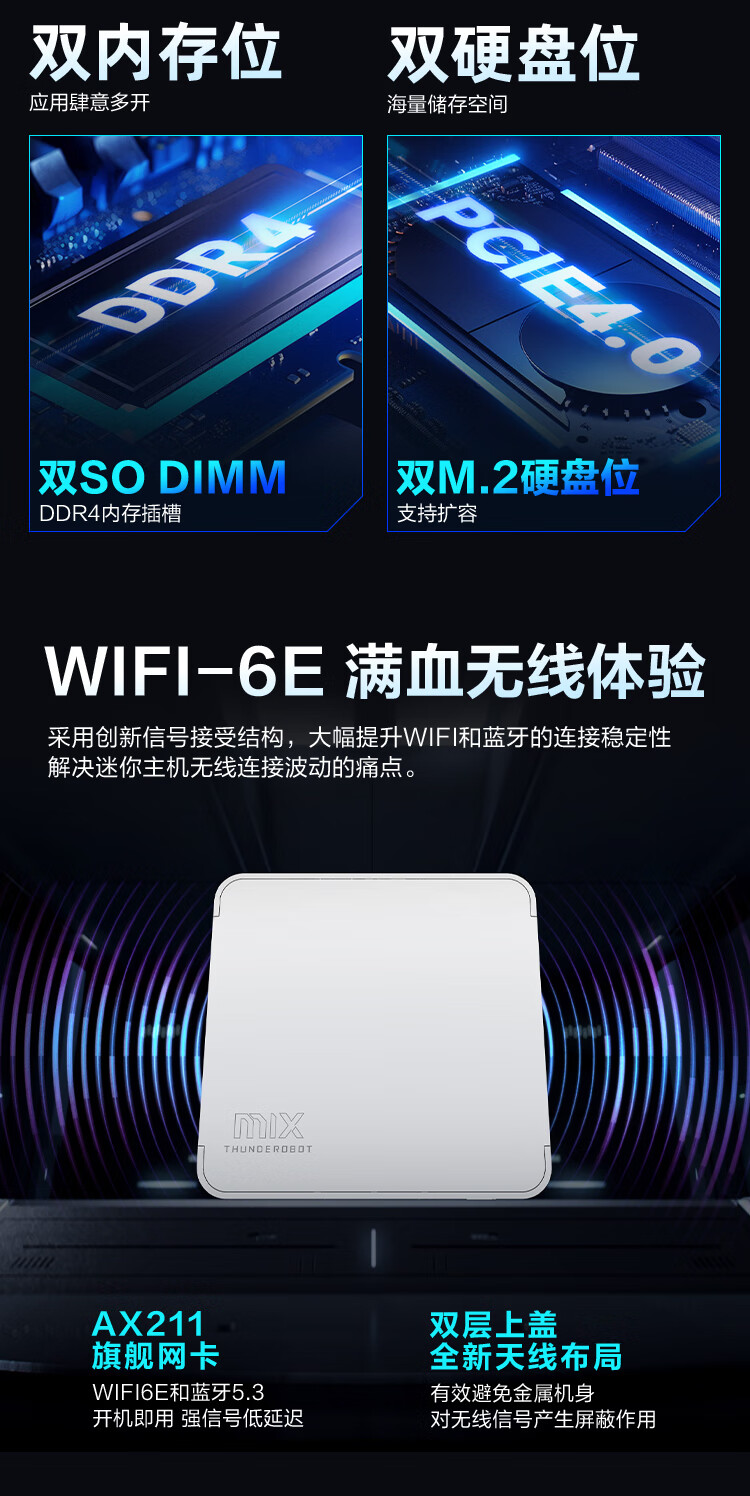 雷神(ThundeRobot)MIX 高性能商务办公电脑mini口袋台式NUC迷你主机准系统(13代i7-13620H 无内存硬盘 WIFI6E)