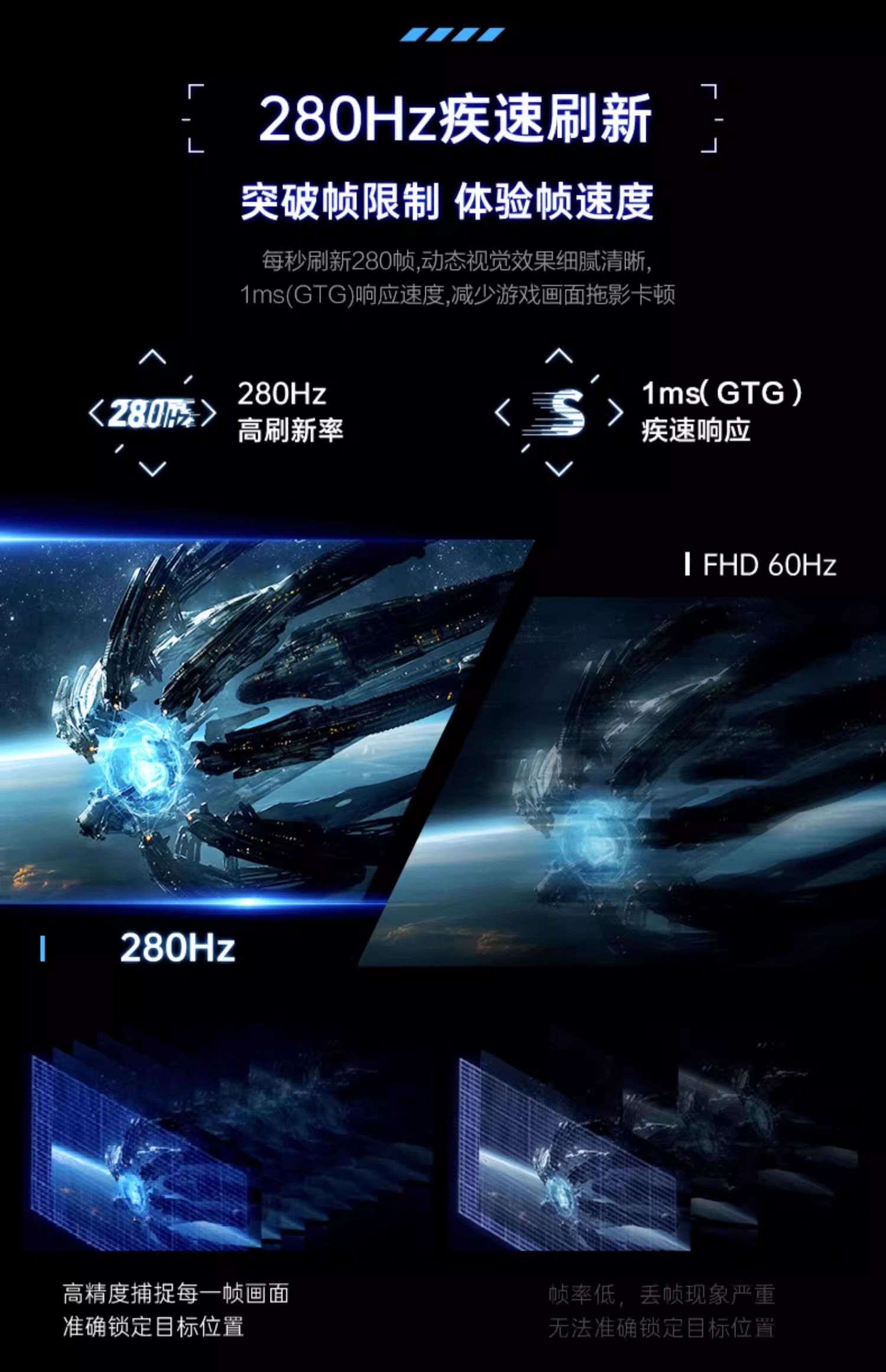 机械师24.5英寸280Hz高刷屏 FAST-IPS高清电竞游戏台式机显示器