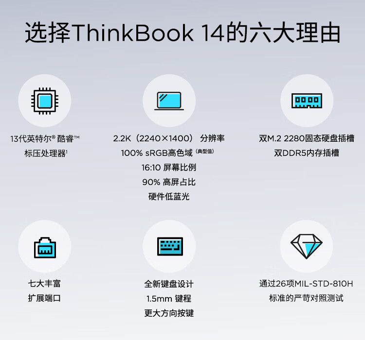 ThinkPad Core联想ThinkBook 14 英特尔酷睿i5,i7 14英寸轻薄办公笔记本电脑13代i5-13500H 16G 1T 2.2K 莱茵认证