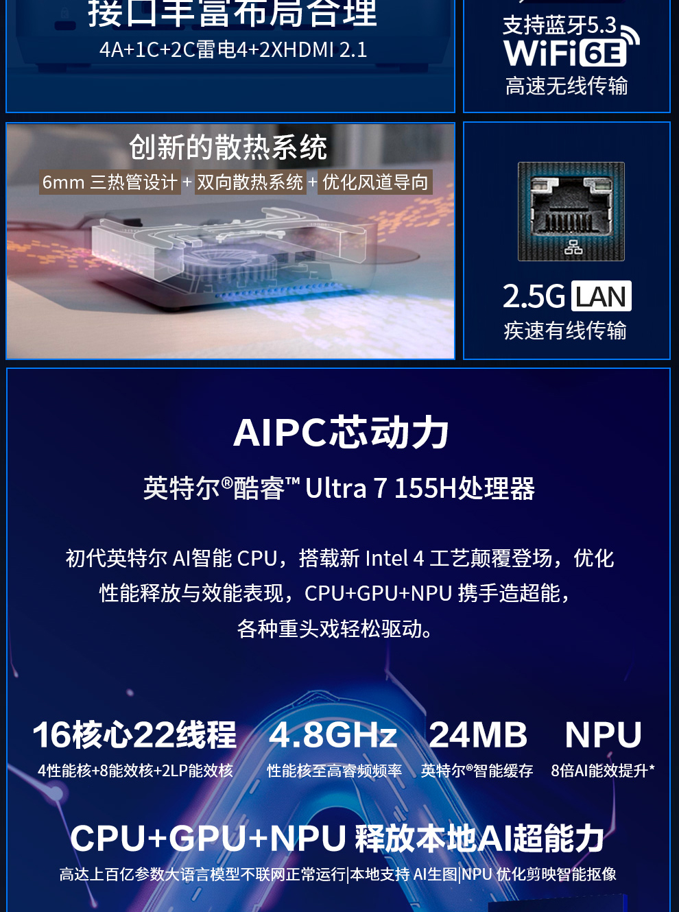 华硕NUC14 Pro+ ASUS mini迷你主机高性能商用AI办公台式机电脑 (酷睿Ultra7-155H 不含内存/硬盘/系统)银 价格咨询客服